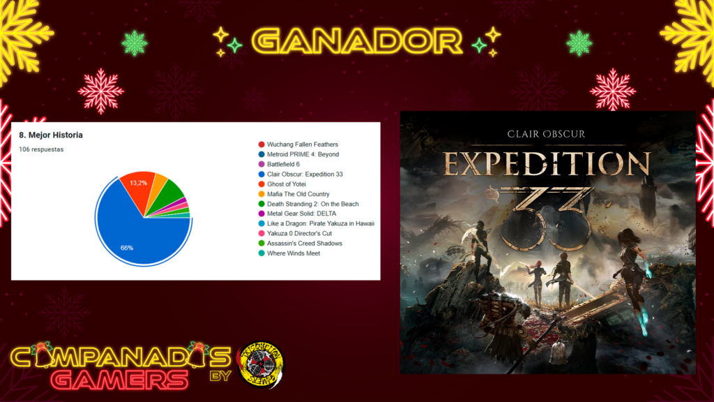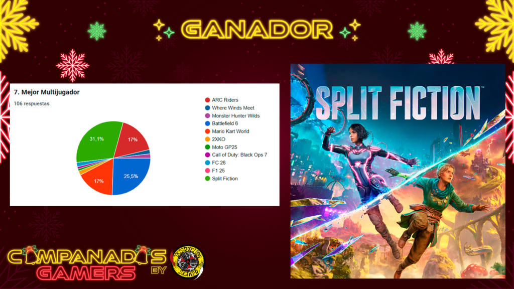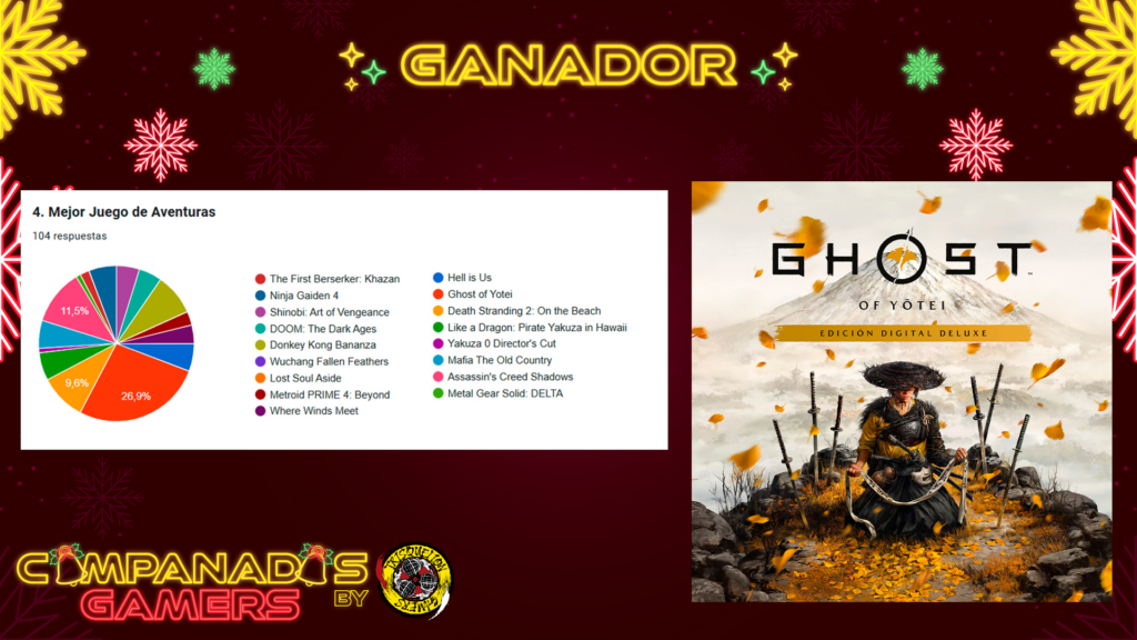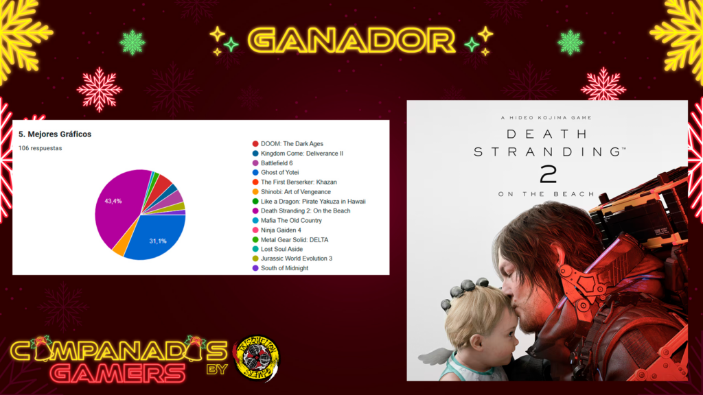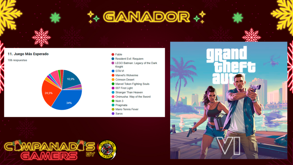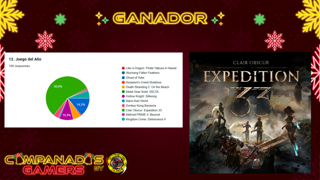 Por fin llegan las #CampanadasGamers2025 de este año, con mucha ilusión después de un año muy dificil en lo personal y en el propio programa. Hemos trabajado muchísimo este año y en esta temporada 4 en concreto para traer una nueva mejor versión del evento. Contamos con 12 invitados, 3 actuaciones musicales y 4 patrocinadores que han permitido el realizar 11 sorteos para la comunidad. Un año 2025 que ha sido espectacular en lo que a los videojuegos se refiere y que nos ha dado muchísimas aventuras, pero… ¿Qué habrá votado la comunidad?.